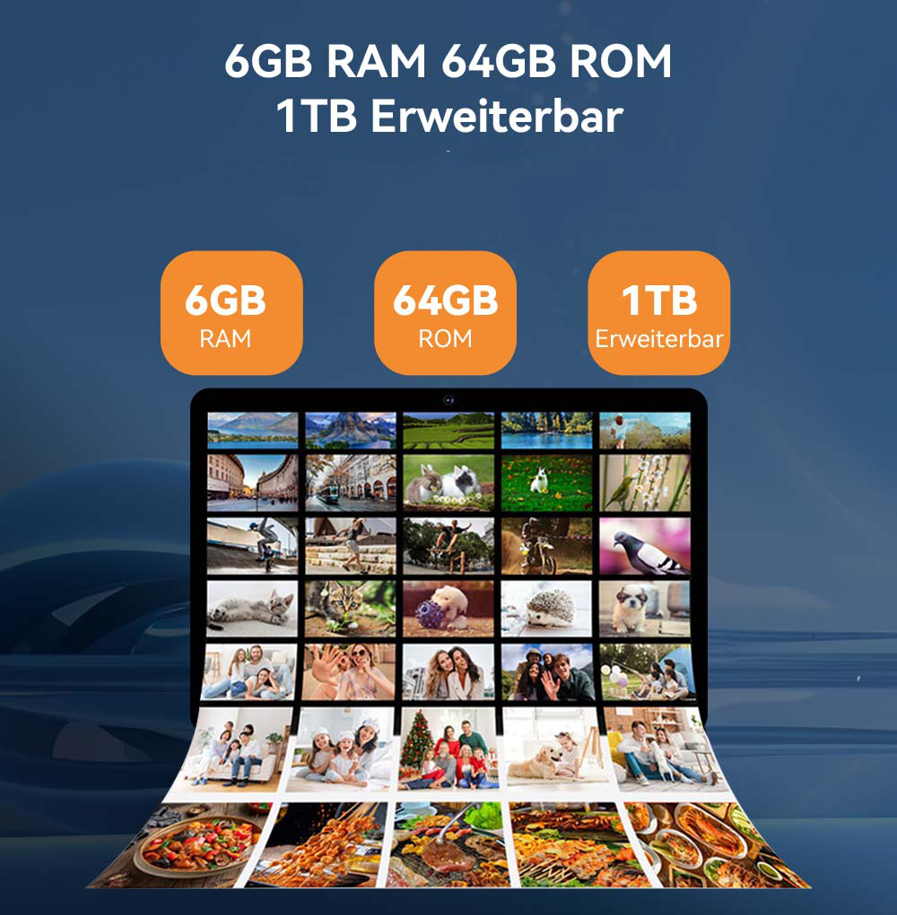 The tablet with 64GB internal storage is expandable up to 1TB via micro-SD card (card not included). Enough space for films, games, videos, music, emails, photos and important files.