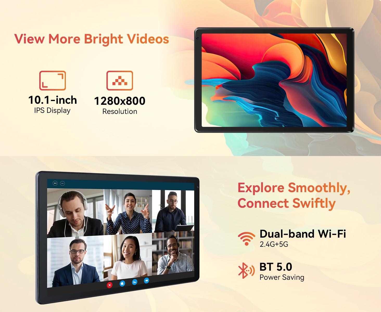 2.4G/5G dual-band WiFi ensures constant connectivity, and the tablet also supports GPS and Bluetooth 5.0.
